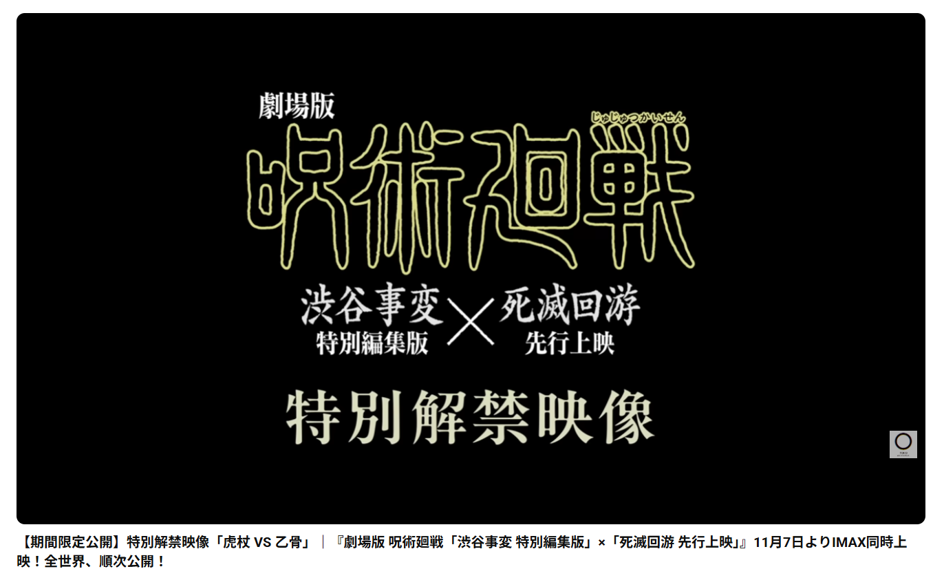11月7日(金)より公開となる『劇場版 呪術廻戦「渋谷事変 特別編集版」×「死滅回游 先行上映」』より虎杖×乙骨の激しいバトルシーン映像を11月10日17:59まで期間限定公開!