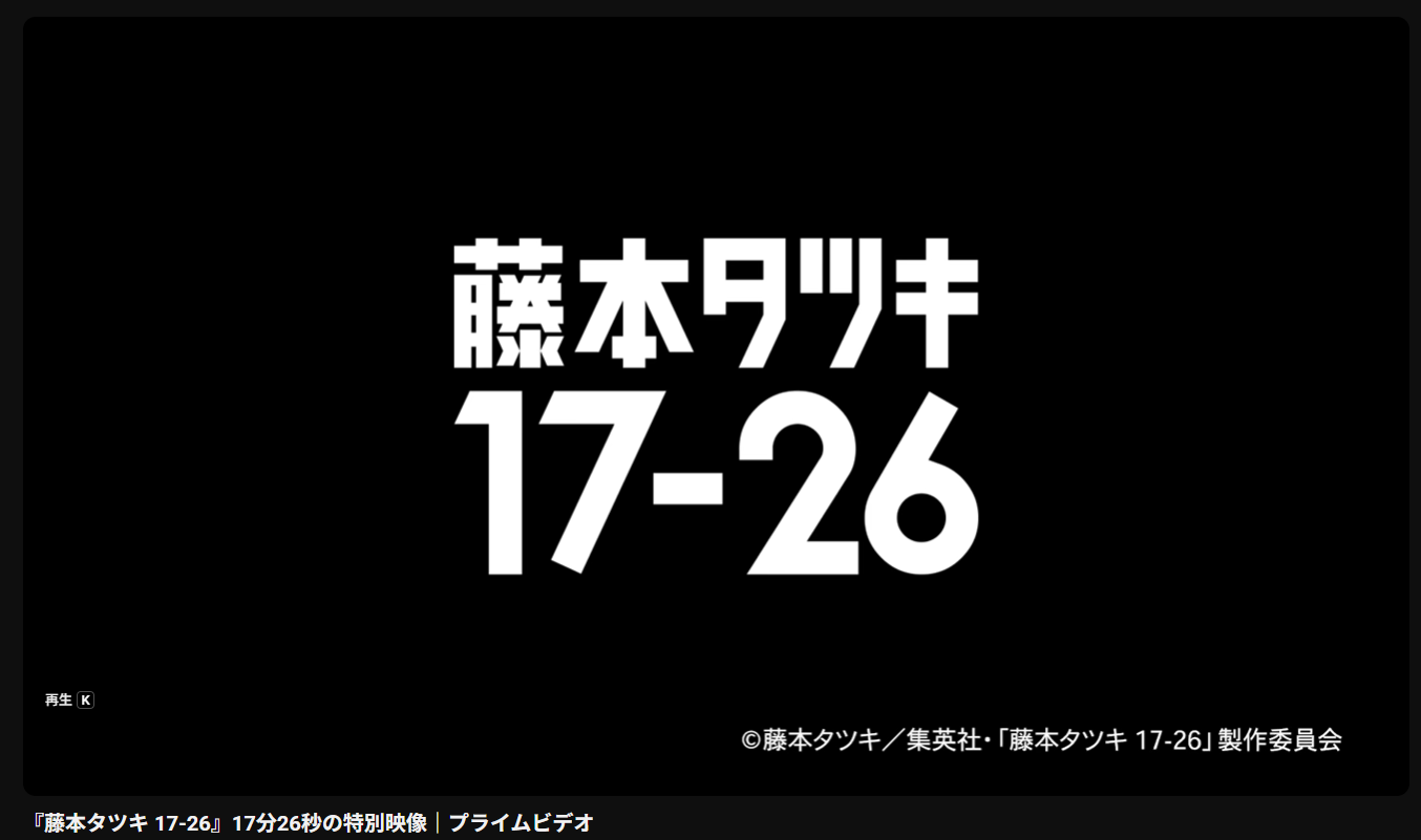 ■『藤本タツキ 17-26』17分26秒の特別映像|プライムビデオ