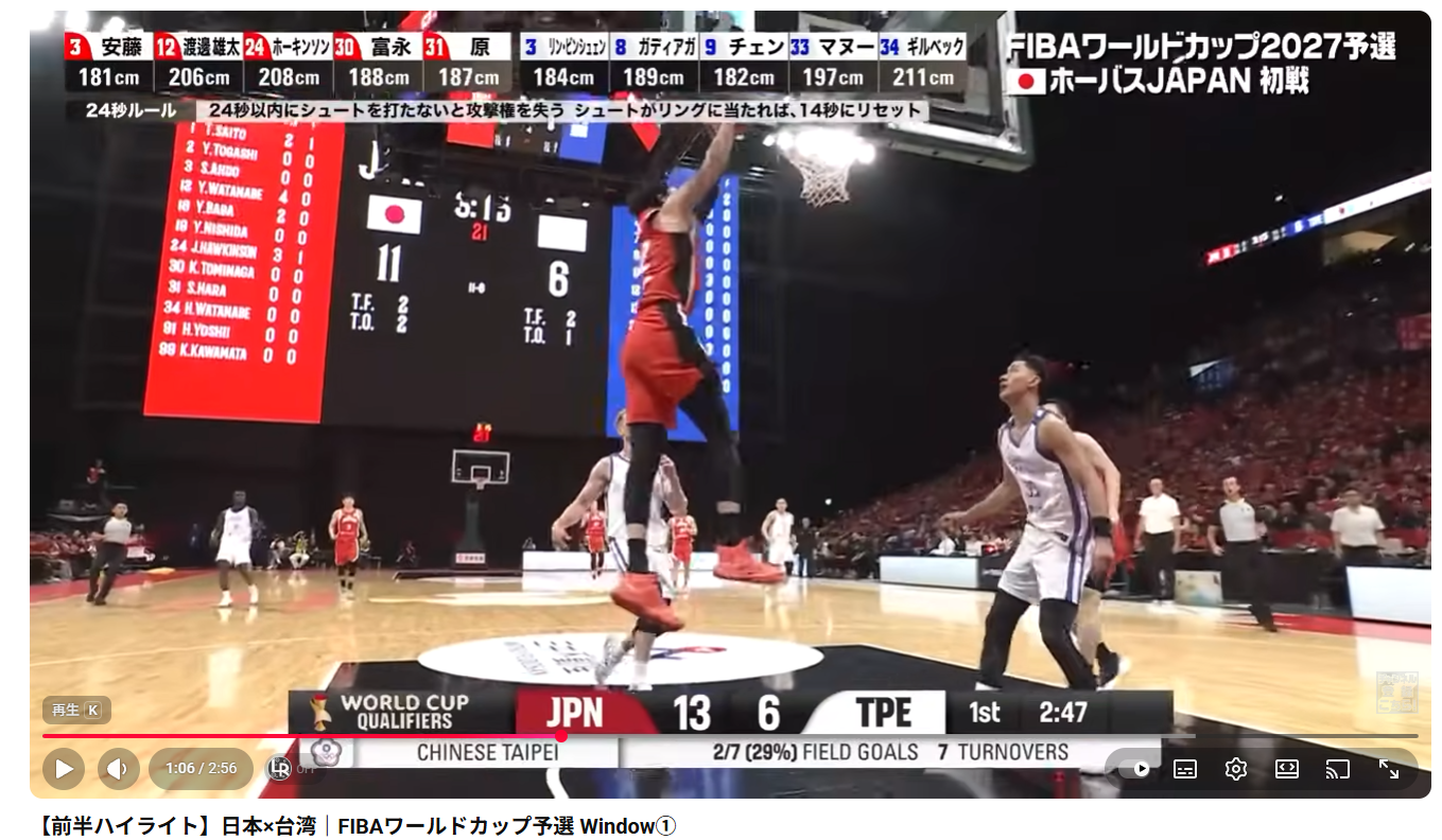 ■日本×台湾|FIBAワールドカップ予選 Window①