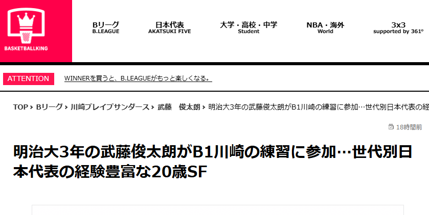 ■明治大3年の武藤俊太朗がB1川崎の練習に参加…世代別日本代表の経験豊富な20歳SF