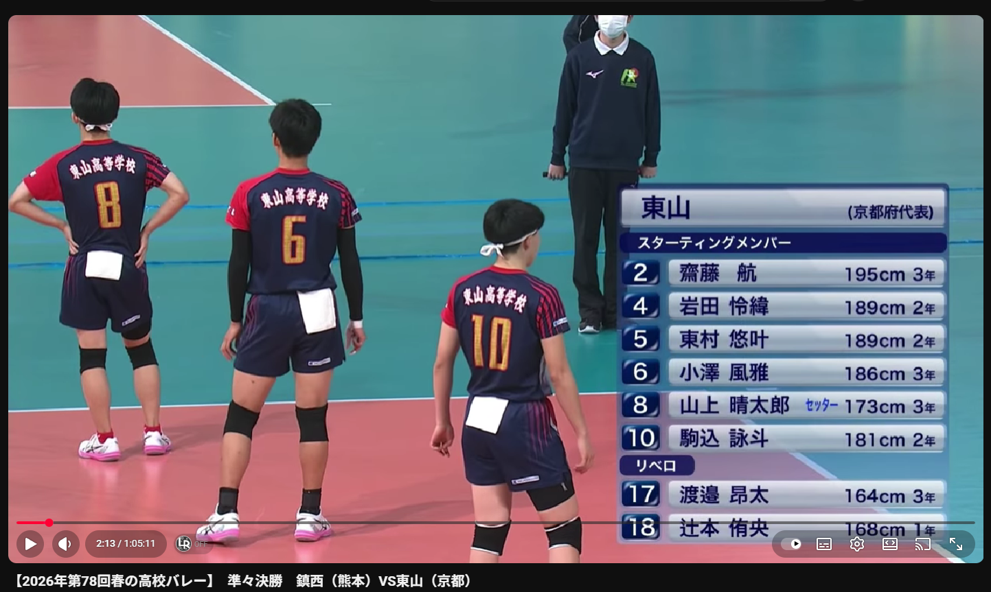 ■【2026年第78回春の高校バレー】 準々決勝 鎮西(熊本)VS東山(京都)