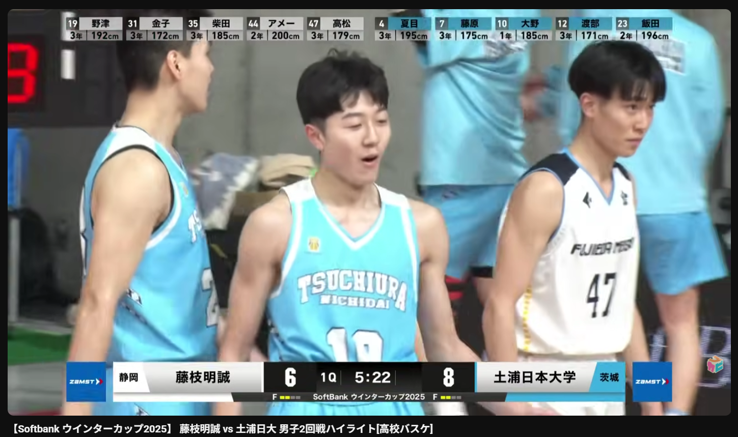 U12,U15ともBOMBERSの圧倒的エースとして新潟県を制覇した大野蓮選手(#10)が、土浦日大に入っても1年目から大活躍中。大野選手の活躍を見たくて✔した土浦日大は現在珍しい留学生なしチームで、留学生相手に体を張る飯田渚颯選手(#23、U18日本代表)や1年生PG 青井選手(#11)その他、魅力的な選手が多く応援したい選手がいっぱいいます。