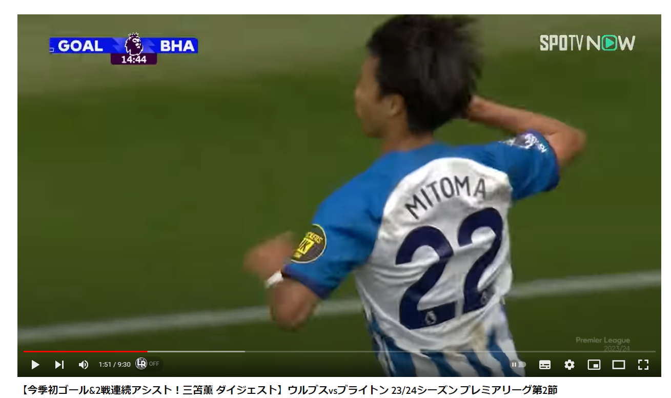 プレミアリーグ開幕し、三苫選手1スーパーゴール(1分40秒~5人抜き?)、2アシスト/2試合と凄い活躍。