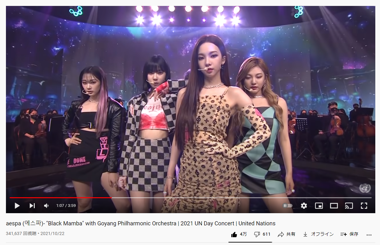 ■20211021 aespa国連本部でのオーケストラとのミニコンサート – “BLACK MAMBA”,”NEXT LEVEL”
