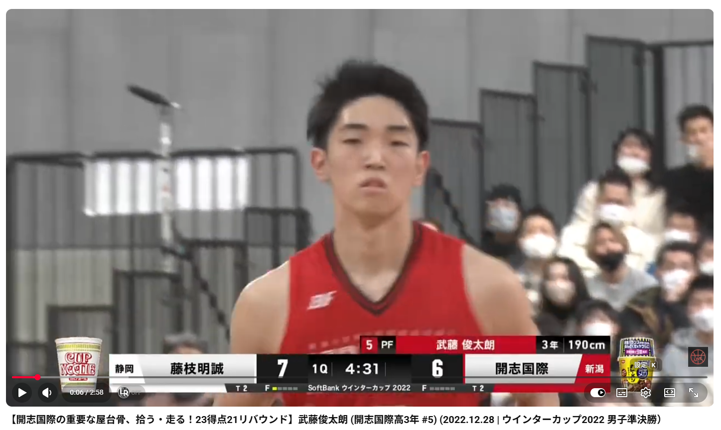 【開志国際の重要な屋台骨、拾う・走る!23得点21リバウンド】武藤俊太朗 (開志国際高3年 #5) (2022.12.28 | ウインターカップ2022 男子準決勝)