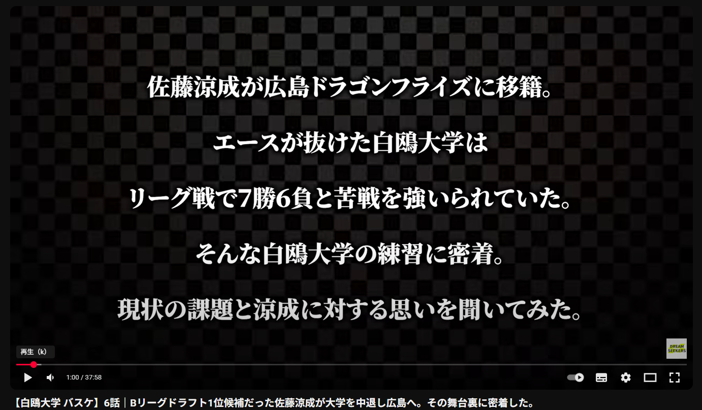 【白鴎大学 バスケ】6話|Bリーグドラフト1位候補だった佐藤涼成が大学を中退し広島へ。その舞台裏に密着した。