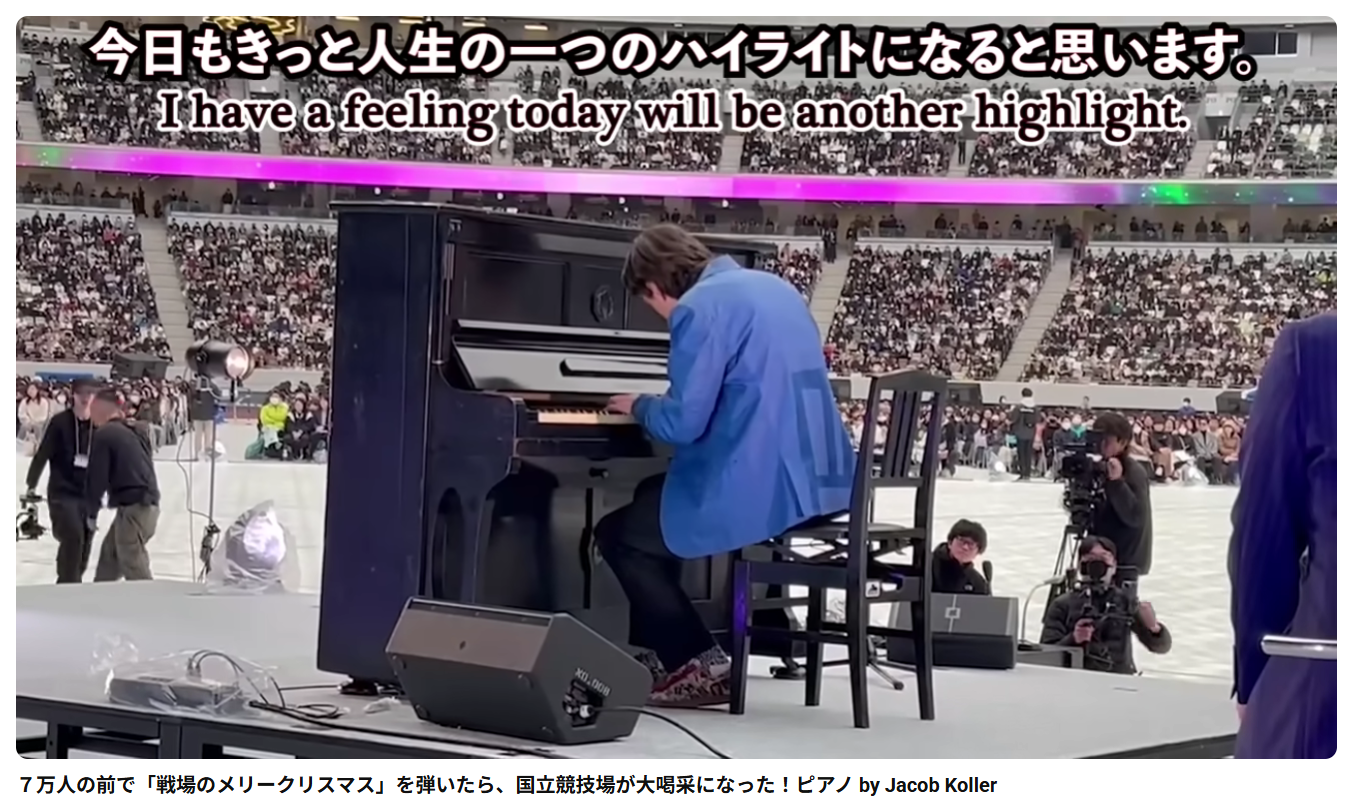 ■7万人の前で「戦場のメリークリスマス」を弾いたら、国立競技場が大喝采になった!ピアノ by Jacob Koller
