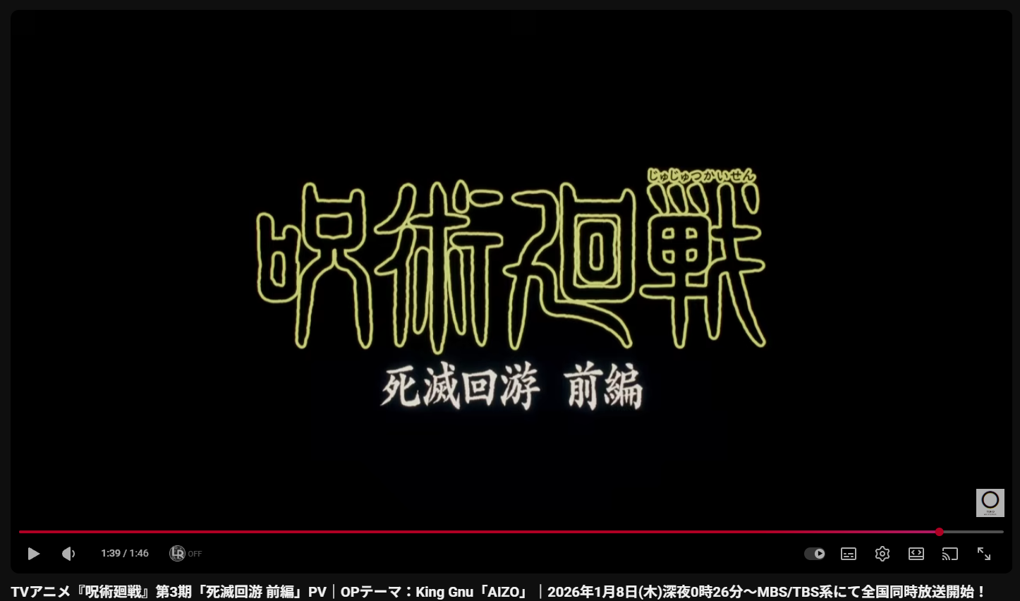 ■TVアニメ『呪術廻戦』第3期「死滅回游 前編」PV|OPテーマ:King Gnu「AIZO」|2026年1月8日(木)深夜0時26分~MBS/TBS系にて全国同時放送開始!