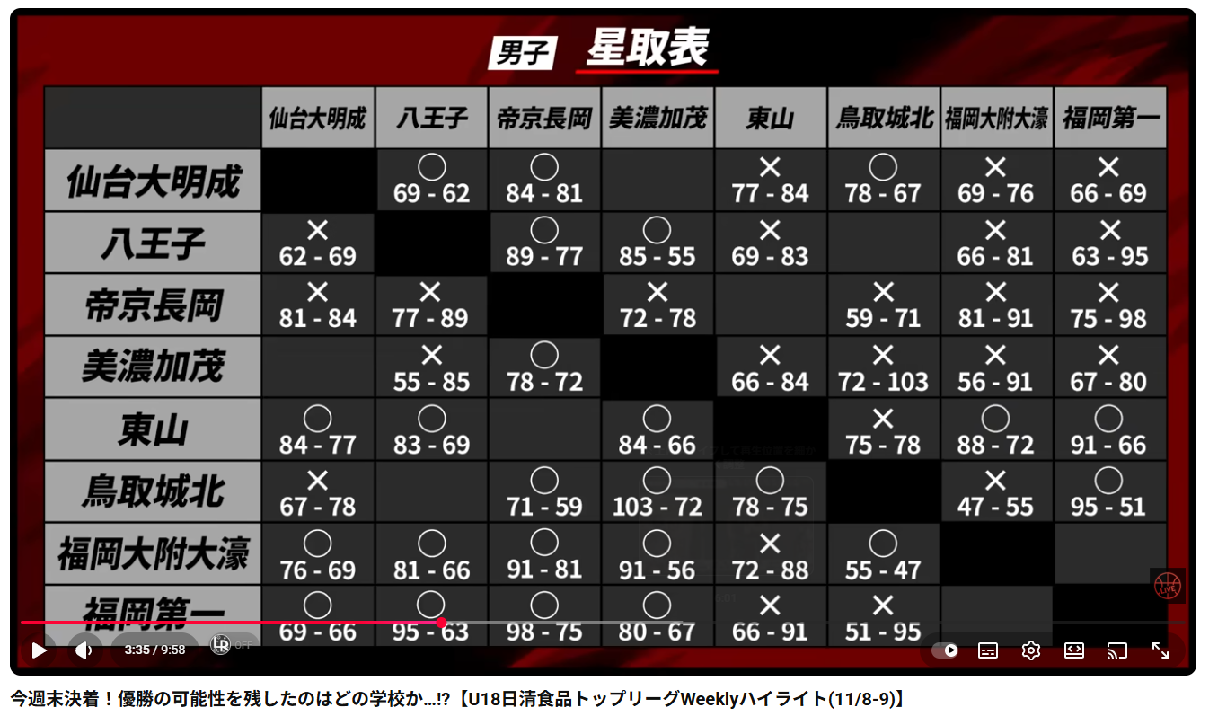 ■今週末決着!優勝の可能性を残したのはどの学校か…!?【U18日清食品トップリーグWeeklyハイライト(11/8-9)】