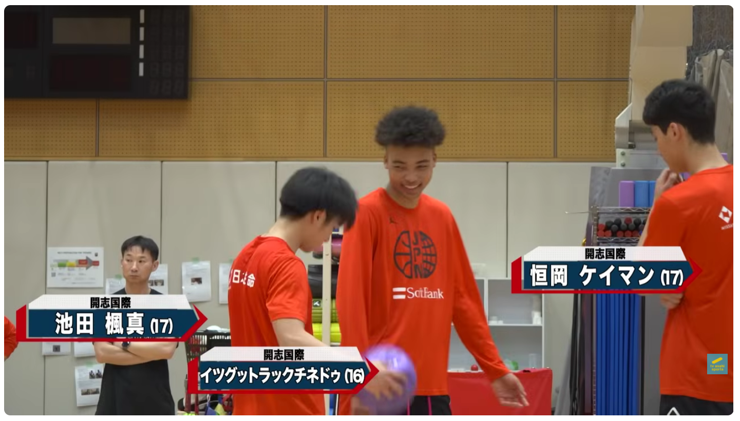 開志国際 高橋ある選手(#11)→代表キャプテン、アメリカから帰って編入した恒岡選手(#5)、1年から日本代表のイヘツ選手(#18)、開志キャプテンの池田選手(#17)。これにホーキンス選手が冬にけがから復帰できれば奇跡の世代となりえます。(大濠も4人選ばれていますのでこちらもすごい。)