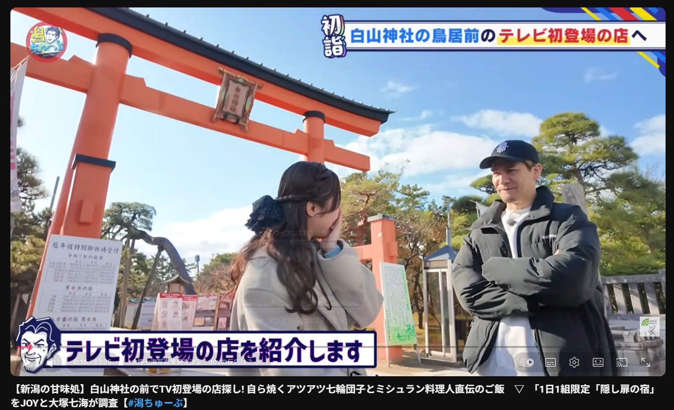 ■【新潟の甘味処】白山神社の前でTV初登場の店探し! 自ら焼くアツアツ七輪団子とミシュラン料理人直伝のご飯 ▽ 「1日1組限定「隠し扉の宿」をJOYと大塚七海が調査【#潟ちゅーぶ】 2025年12月14日